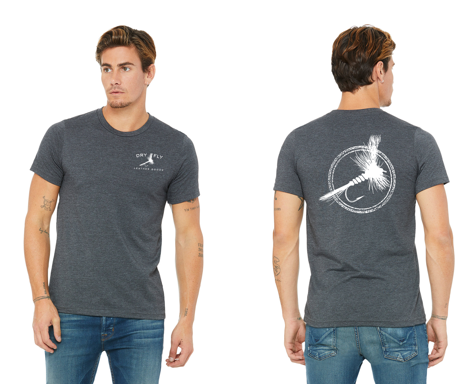 Our ultra-soft crew neck t-shirt will be one of your well-loved everyday tees. We have the DFLG logo on front and the our dry fly graphic on the back. Available in two color options: Dark Heather Gray or Heather Columbia Blue.