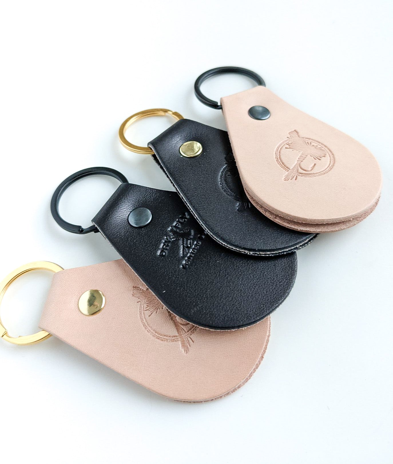 Y'all it's time to straighten that line which is looking more like a slinky and get back on the water with our Leader Straightener/Key Ring – a versatile tool for anglers and outdoor enthusiasts alike. Handcrafted in Happy Valley, OR, this essential accessory is crafted from full-grain leather and embossed with the iconic Dry Fly logo.