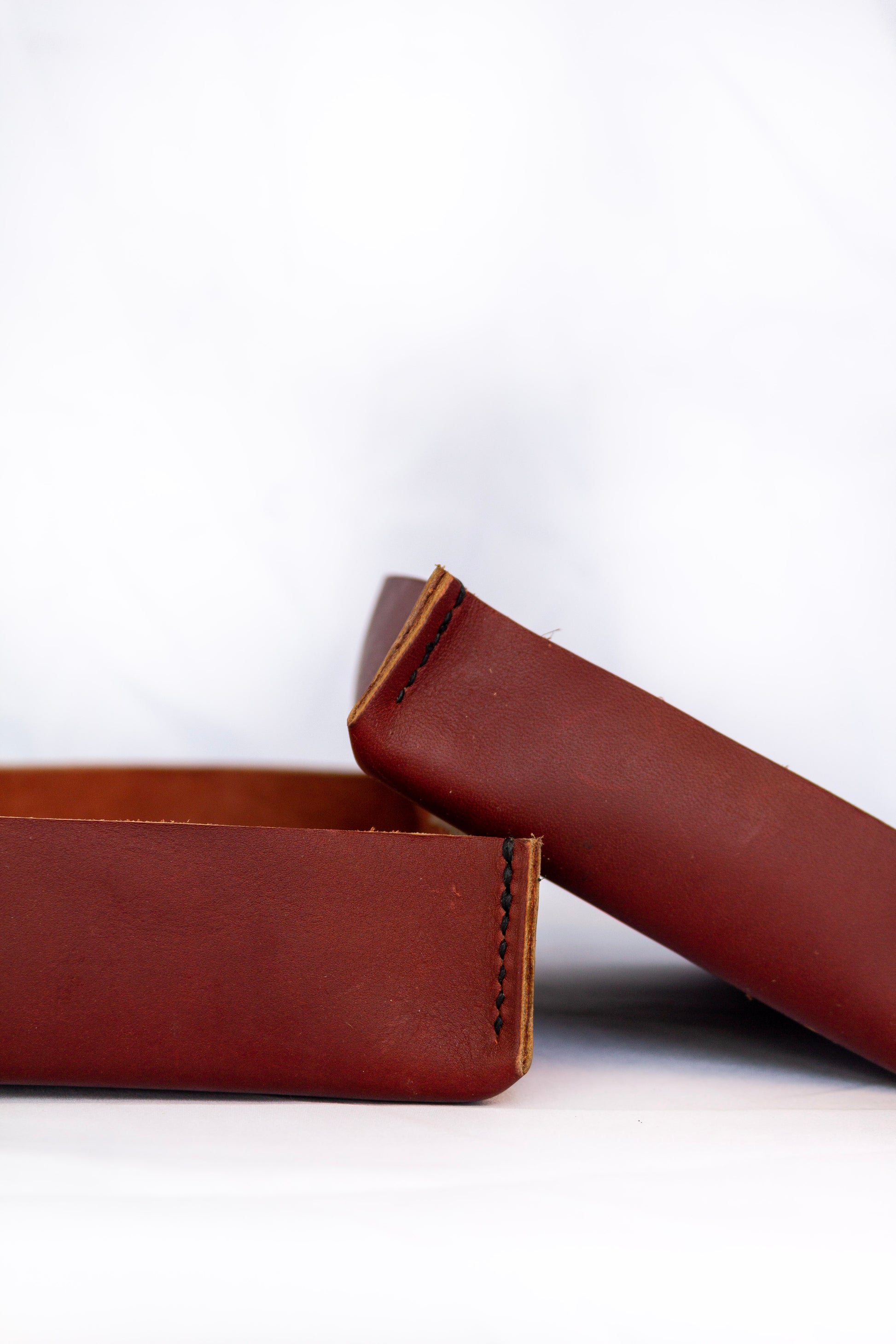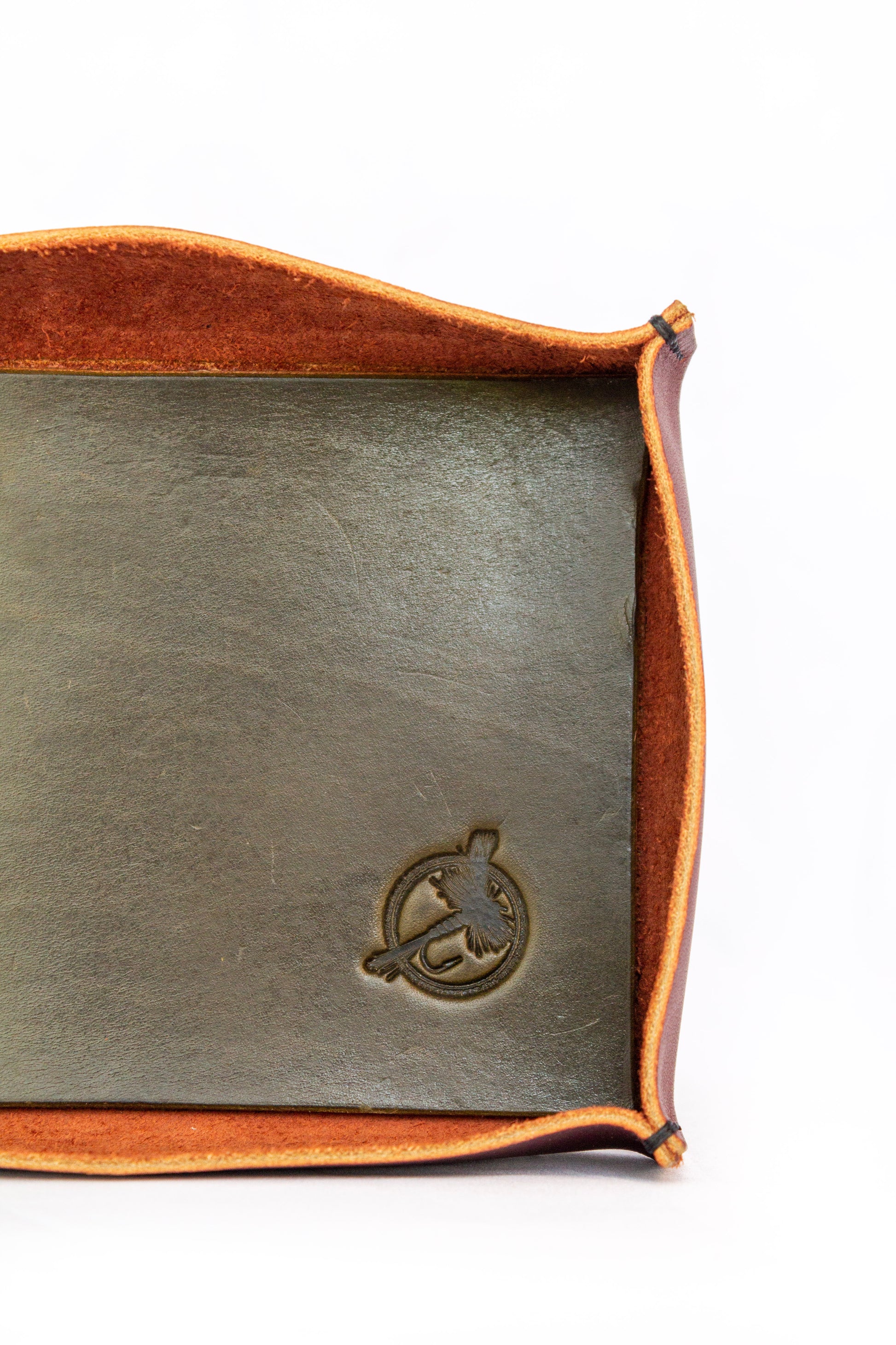 This leather valet tray will meet all of your everyday carry needs. Add it to any desk or entryway for your keys, wallet, phone and more! Made with full-grain leather, hand-stitched corners and embossed with DFLG logos. Available in two sizes - small and medium.