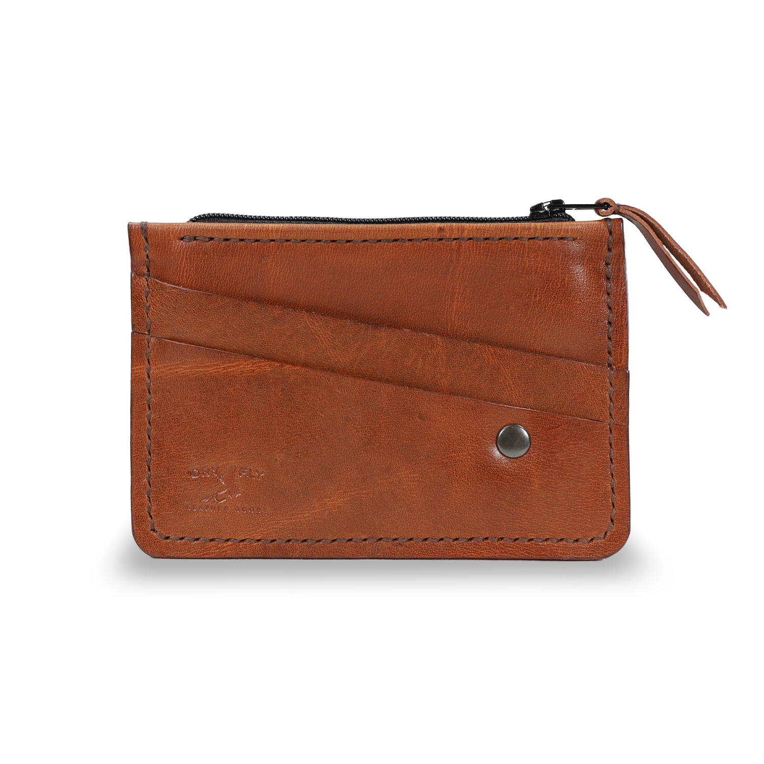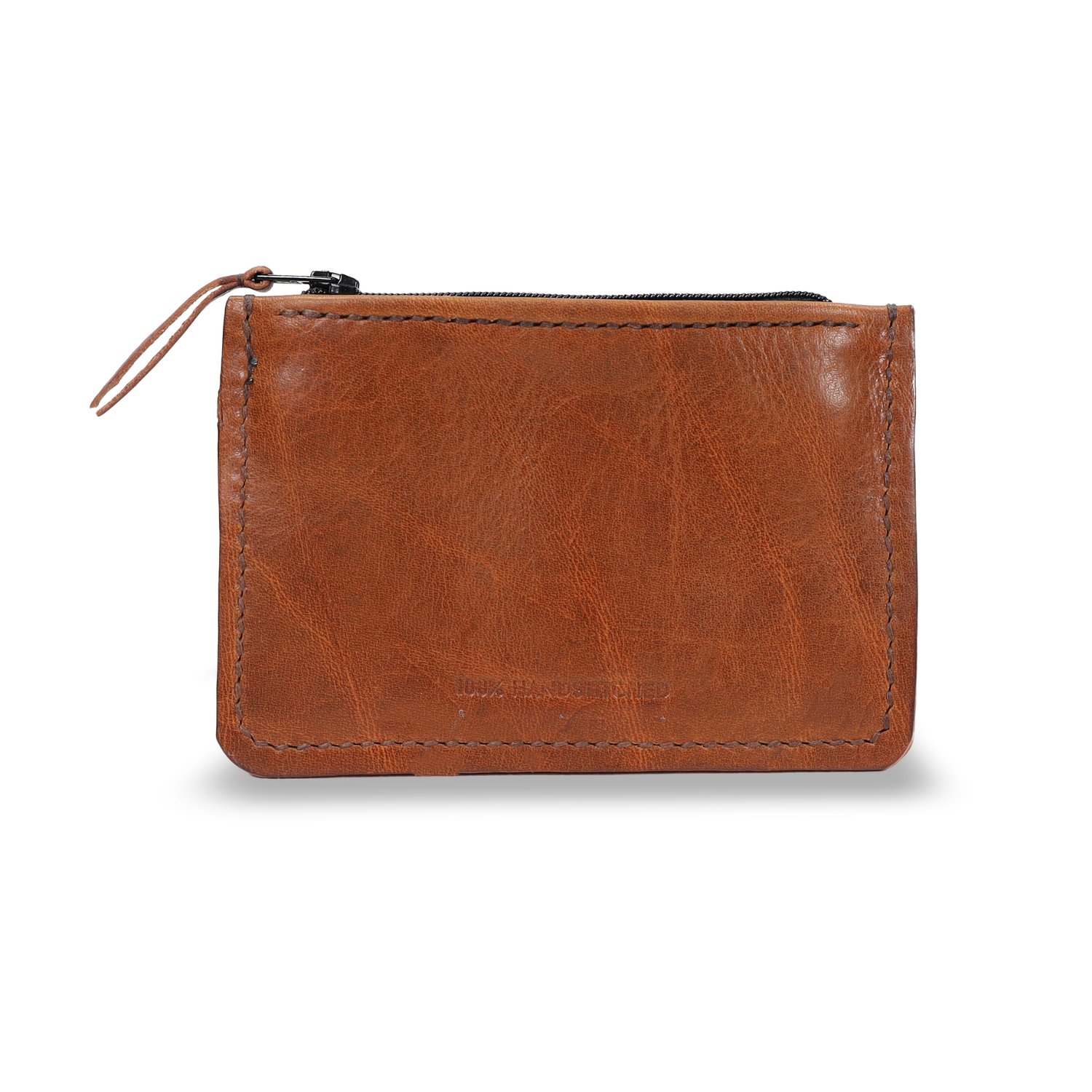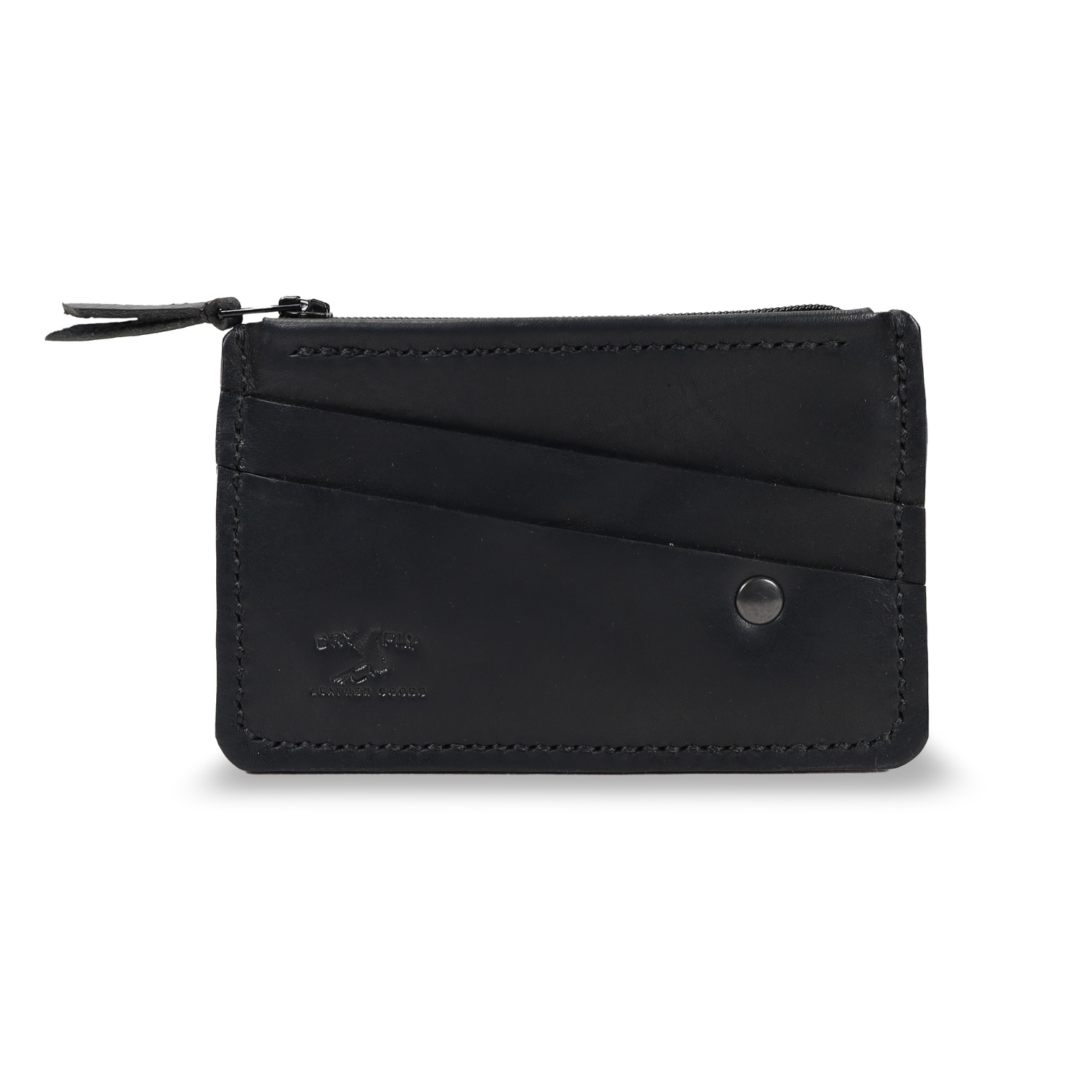 The minimalist design of this card + zipper wallet is hand-stitched for superior strength and impresses with a slim profile. It has three pockets total - two outer card pockets and one middle zipper pocket.